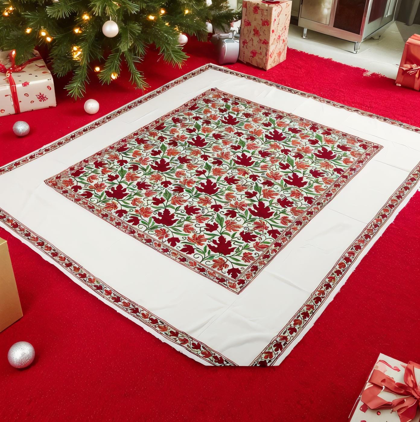 Embroidered Bedspread: Cotton Bedding Set with Woolen Maple Leaf Design