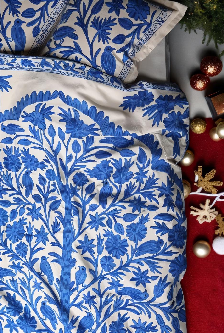 Free Shipping/ Tree Of Life One tone/ Bed Sheet / Duvet Cover/ Hand Embroidered from India/Cotton/ Linen